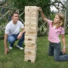 Please note care should be taken when playing Mega Tumble Tower. Players should always be on their feet and be wary of the tower falling. This game is not suitable for Children without adult supervision, it is simply too big!