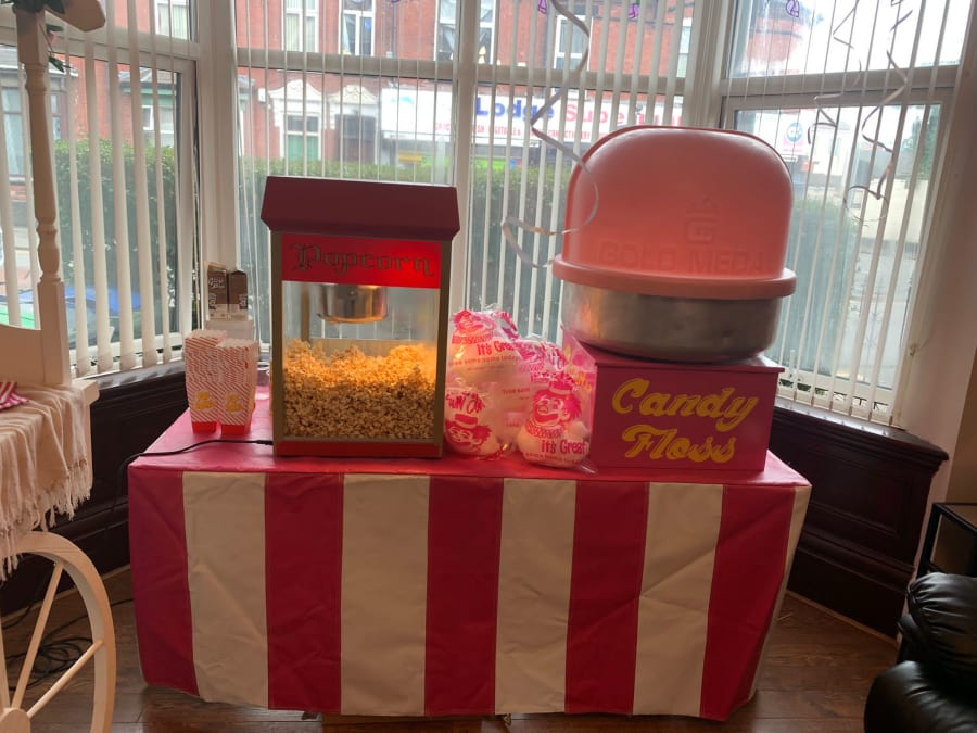 We can supply Popcorn Cart with Machine at extra cost of £20 if needed please leave a note on booking form for this option.